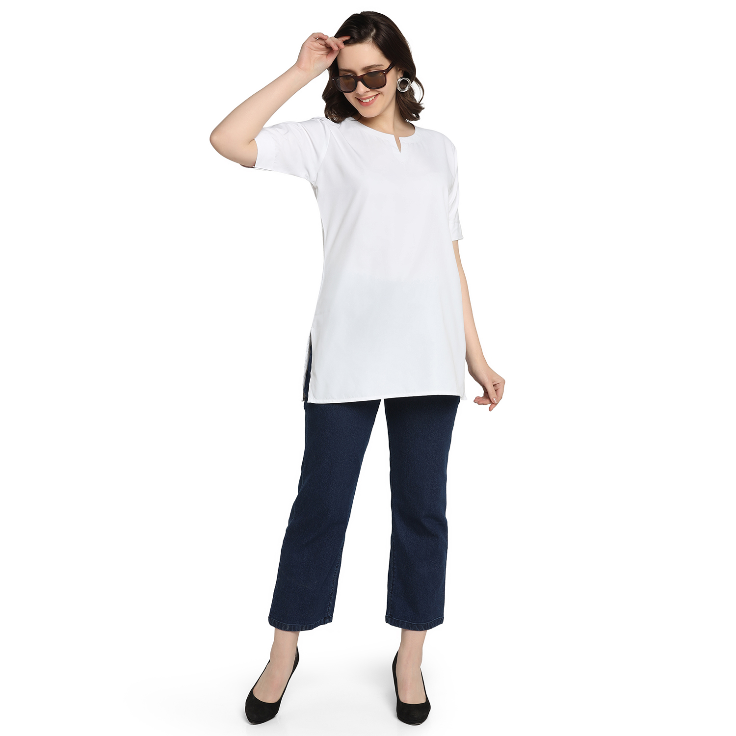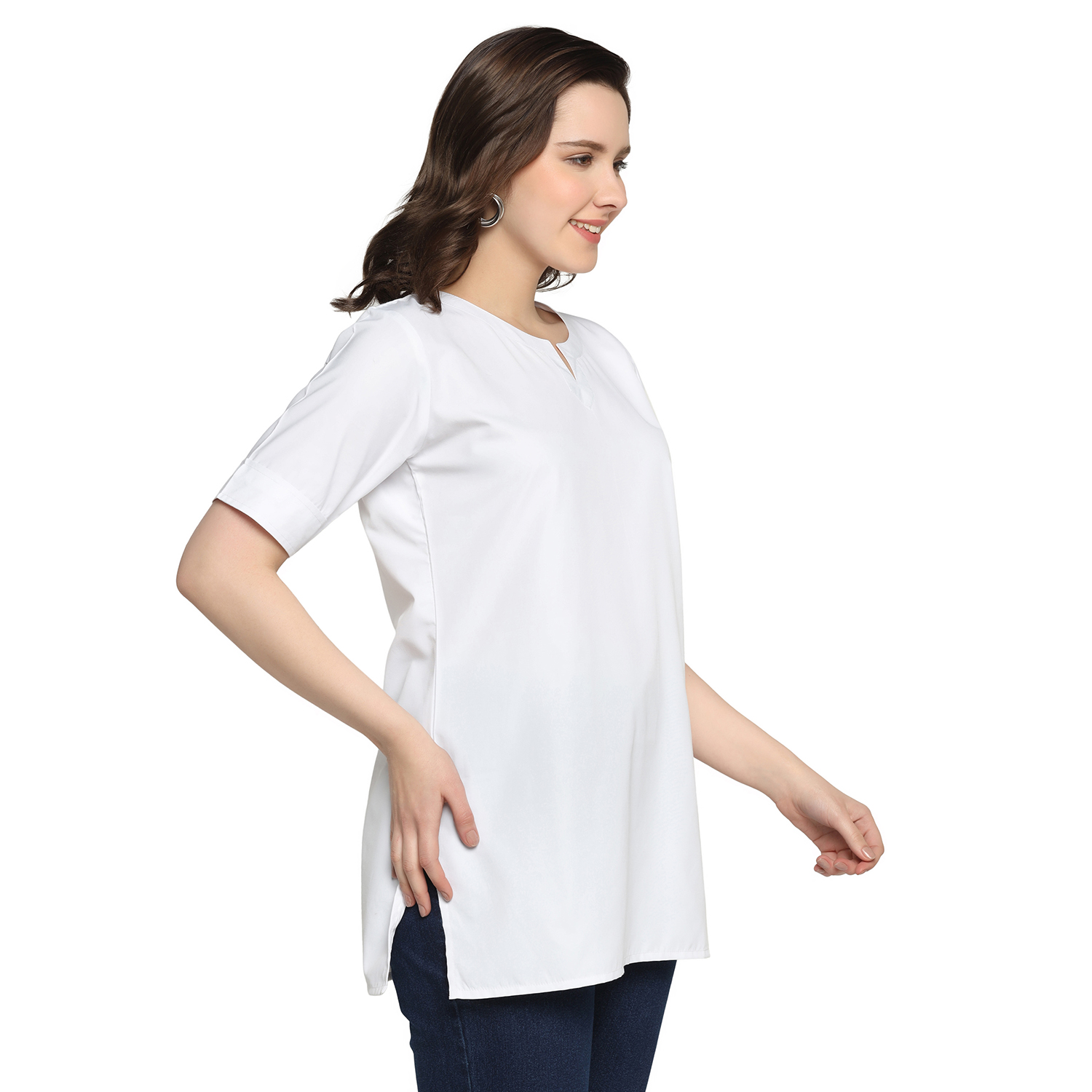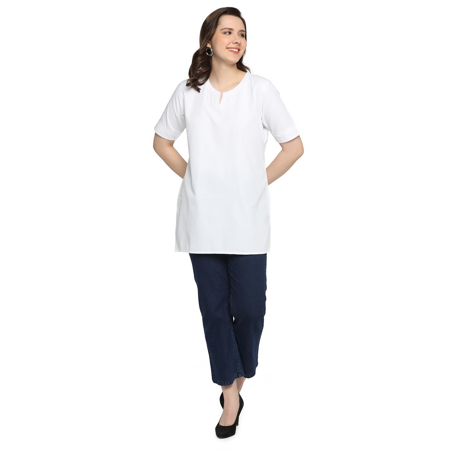 • Style: Minimal notch neck, half sleeves