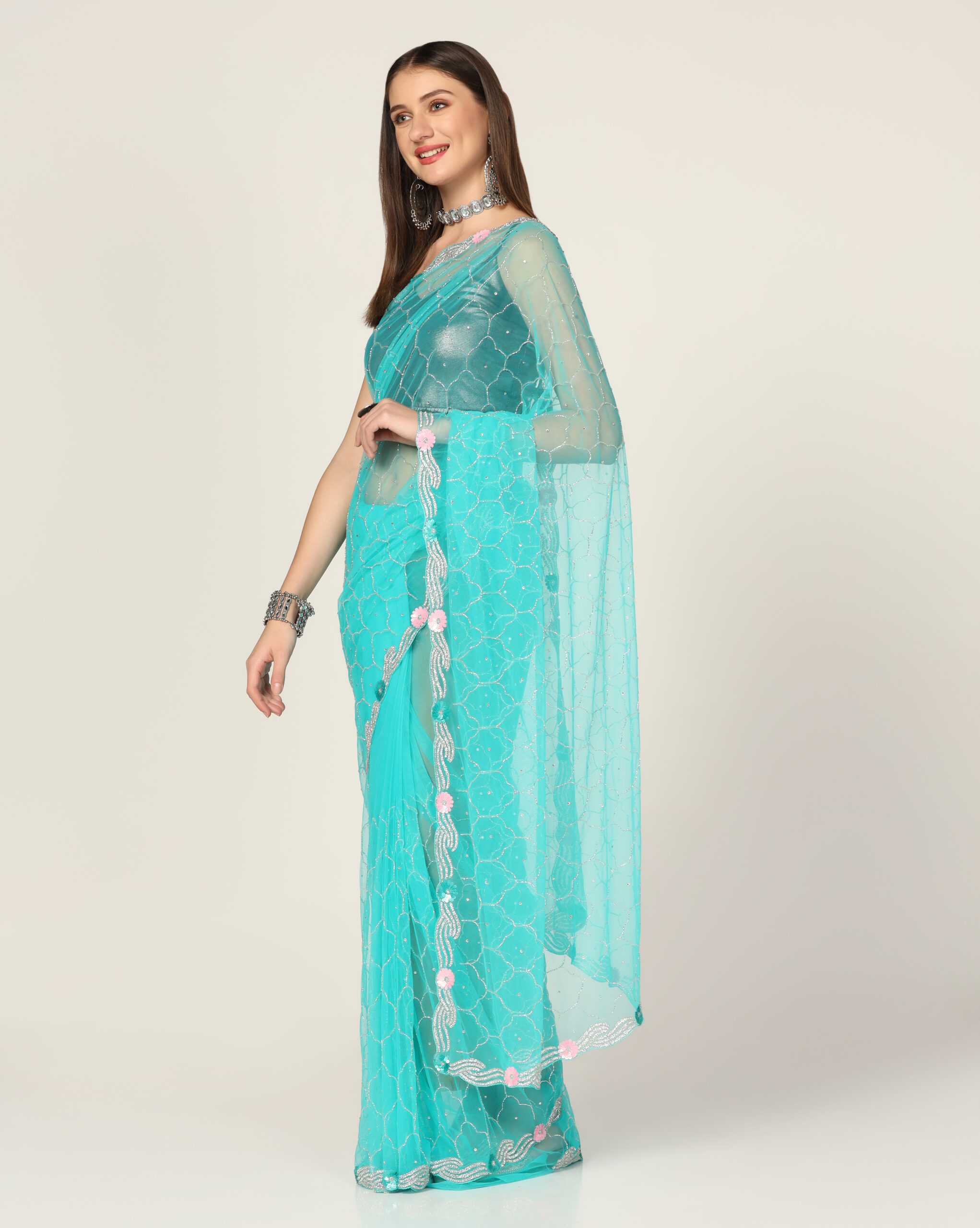 Be the first to review “WOMEN NET EMBROIDERED SAREE”